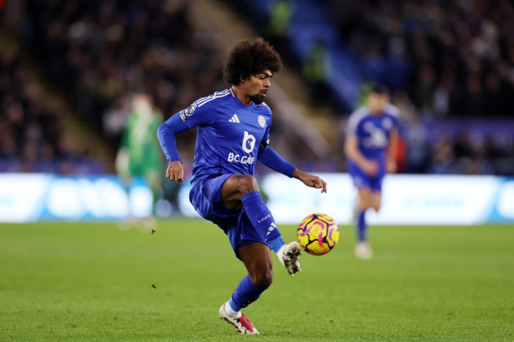 LEICESTER, ENGLAND – DECEMBER 29: Hamza Choudhury of Leicester City during the Premier League match between Leicester City and Manchester City at King Power Stadium on December 29, 2024 in Leicester, United Kingdom. (Photo by Plumb Images/Leicester City FC via Getty Images)