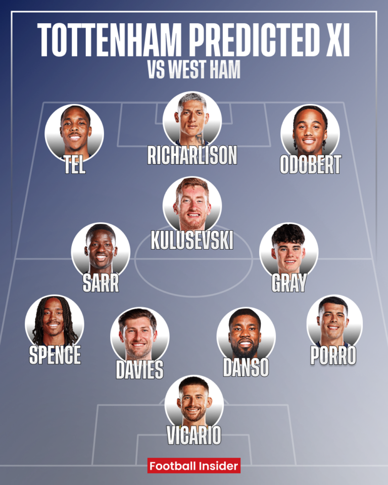 Richarlison is expected to lead the line, flanked by Mathys Tel on the left and Wilson Odobert on the right—replacing Brennan Johnson in the front three.
