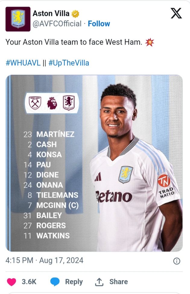 There was an anxious wait to see if Ollie Watkins would be fit enough to start, but the club’s official announcement provided a significant boost: Watkins is named in the Villa XI.