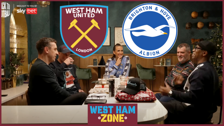 Speaking on The Overlap’s Stick to Football alongside Jamie Carragher, Jill Scott, and Ian Wright (19 December, 1:11:18), Gary Neville predicted a draw, citing the unpredictability of the fixture, while Roy Keane pointed to Brighton’s defensive struggles as the reason West Ham might secure a win.