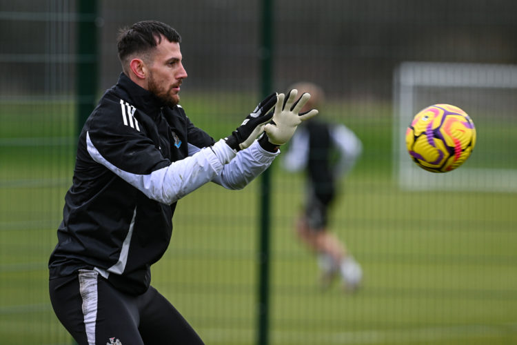 NEWCASTLE UPON TYNE, ENGLAND – JANUARY 22: Goalkeeper Martin Dubravka catches the ball during the Newcastle United Training Session at the Newcastle United Training Centre on January 22, 2025 in Newcastle upon Tyne, England. (Photo by Serena Taylor/Newcastle United via Getty Images)