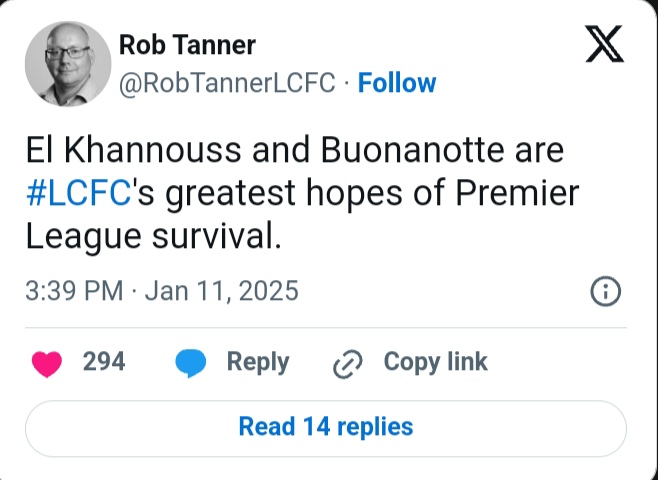 Journalist Rob Tanner weighed in on X/Twitter, stating, “El Khannouss and Buonanotte are LCFC’s greatest hopes of Premier League survival.”