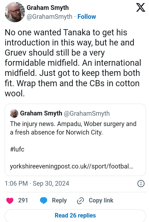 Despite Leeds United’s depth in midfield, a journalist from the Yorkshire Evening Post urged caution regarding the use of Tanaka and Gruev during Ampadu’s absence.