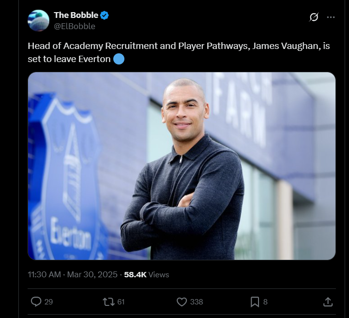 As Everton undergoes a major restructuring, head of academy and player pathways, James Vaughan, is now set to depart.