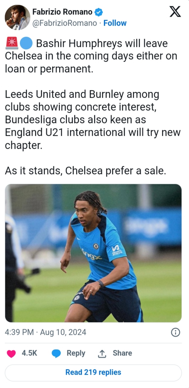 On August 10, a transfer journalist reported on X that Leeds United are vying with Burnley and German clubs for the England Under-21 international.