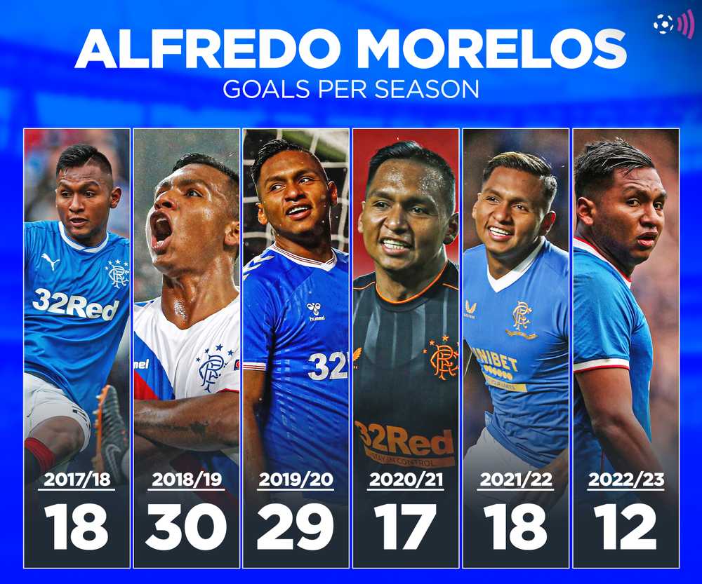 Over time, Morelos built a remarkable record at Ibrox, scoring 124 goals in 267 appearances while also providing 57 assists.