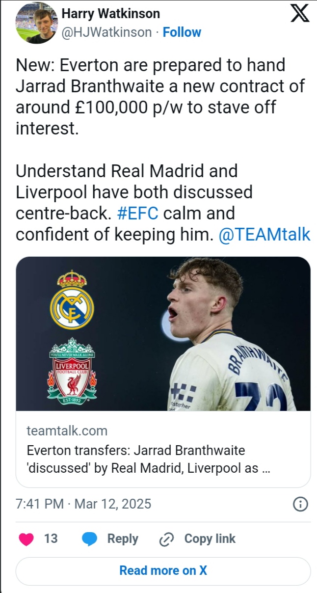 Defender Jarrad Branthwaite has suggested he will remain at Everton this summer despite strong interest from clubs across Europe.