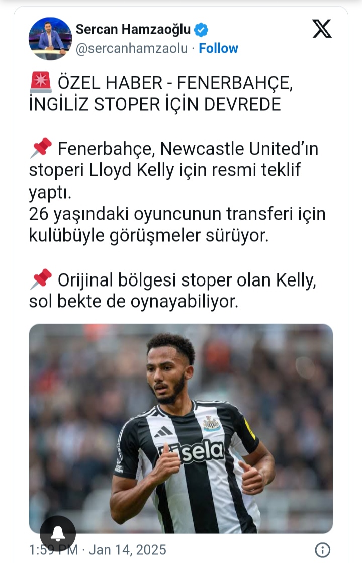 Fenerbahce have reportedly made an offer to sign Newcastle United defender Lloyd Kelly, as per reports from Turkey.
