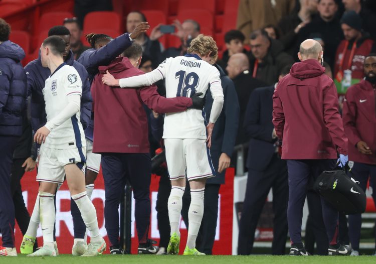 Gordon was seen leaving Wembley with a slight limp and was subsequently released from the England squad on Sunday, ruling him out of Monday’s match against Latvia.