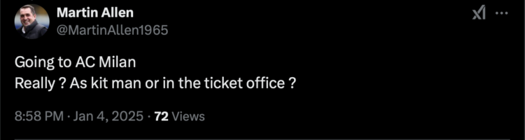 Allen sarcastically questioned Milan’s interest, saying: “Going to AC Milan… Really? As (the) kit man, or in the ticket office?”