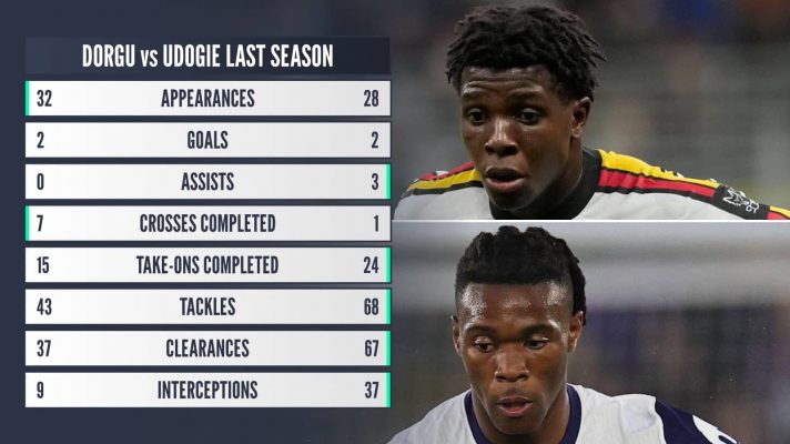 A comparison of Dorgu and Udogie’s stats from last season highlights that Udogie currently has the edge in terms of end product.