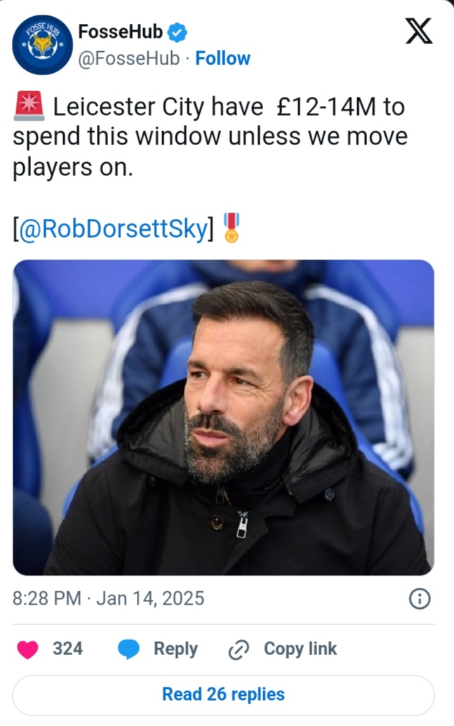 The club must operate on a tight budget, with reports from Rob Dorsett of Sky Sports on January 14 suggesting Leicester has just £12–14 million available for transfers.