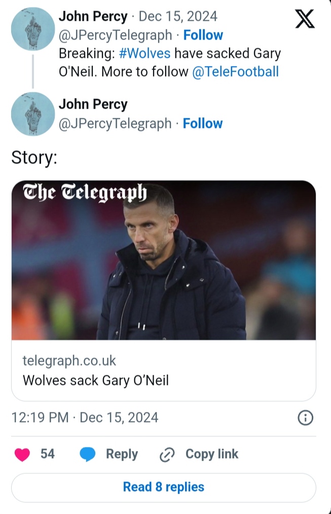 Despite receiving a vote of confidence from the board earlier in the week, O’Neil’s tenure has come to an abrupt end, leaving Wolves in search of a new manager.