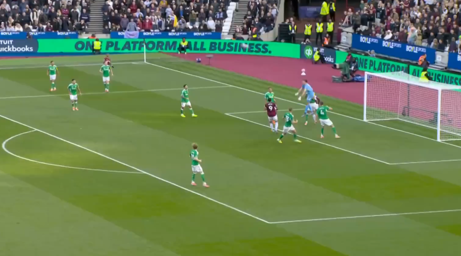 He punched the initial cross from Summerville and didn’t set himself properly. Fernandes cushioned the header perfectly to Paqueta, who struck it cleanly with his left.