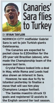 The newspaper reported on 4 August (page 70) that the 25-year-old Brazilian is set to travel to Turkey to join Galatasaray in a deal worth nearly £20 million.