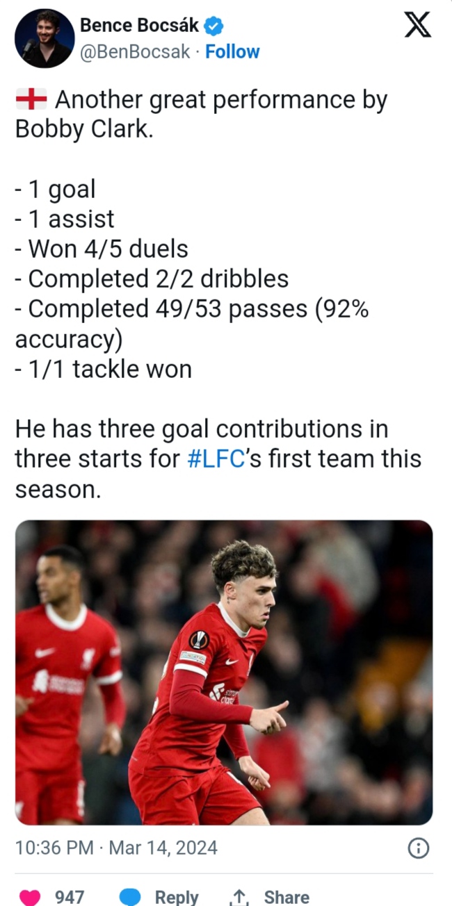 Praised for his “great performance” for Liverpool’s first team by Bence Bocsak last season, Clark needs consistent senior minutes to continue his growth.