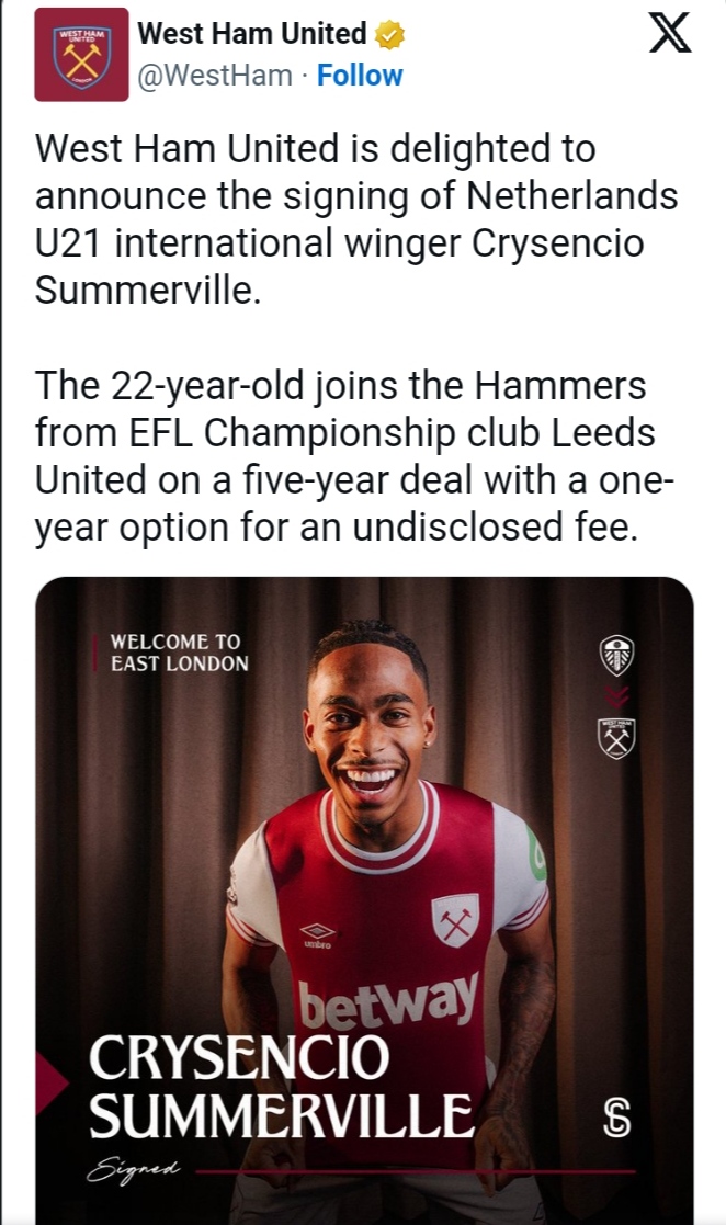 It’s been a challenging summer at Elland Road since their playoff defeat to Southampton. This setback has led to several key departures, including Archie Gray, Glen Kamara, and most notably, Crysencio Summerville, who recently moved to West Ham United, leaving a significant gap in Daniel Farke’s attack.