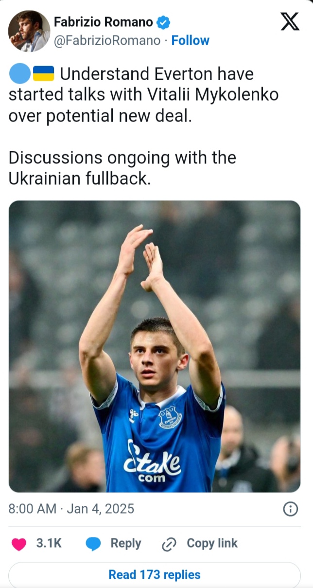 According to Fabrizio Romano, Everton have initiated discussions with the Ukrainian international to extend his contract beyond 2026.