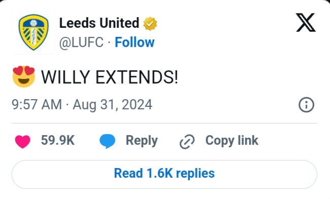 Fans are now delighted to see him not only staying at Leeds past the transfer deadline but also signing a new contract and embracing the club’s badge with renewed enthusiasm.