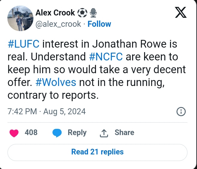 Alex Crook reports: Leeds United Face No Competition from Wolves in Pursuit of Norwich City Ace Jonathan Rowe