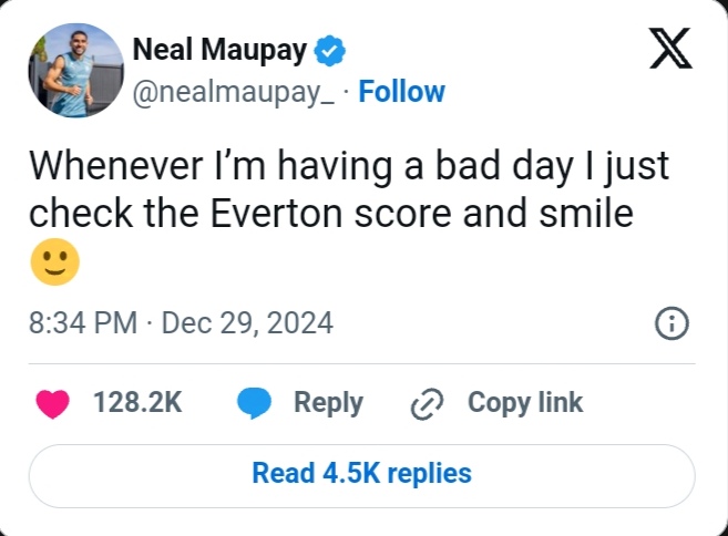 Neal Maupay once again drew the ire of Everton fans with his recent social media post on X (29 December), where he mocked his parent club following their 2-0 loss to Nottingham Forest on Sunday.
