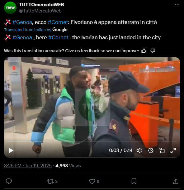 Sky Sports reporter Dharmesh Sheth recently reported that Genoa is the most likely destination for the Ivorian on loan.