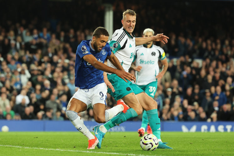 In that instance, Dan Burn positioned himself between the ball and the player, causing Dominic Calvert-Lewin to kick the back of his leg, and no penalty was awarded.