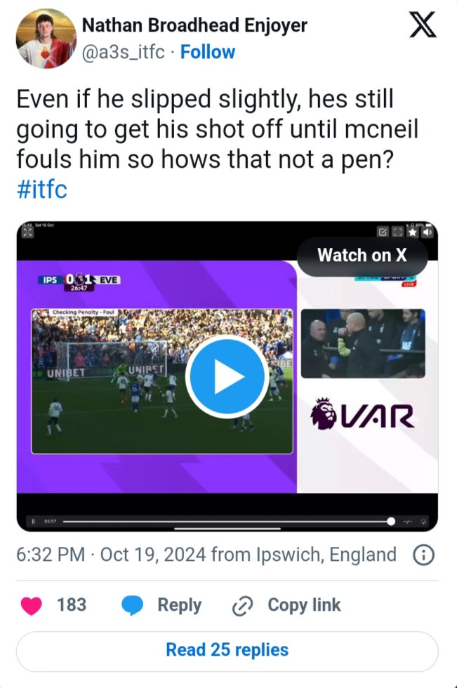 While the decision was ultimately correct, which is the referee’s job, it has still sparked significant debate, especially in comparison to a similar incident in Everton’s previous match before their trip to Ipswich Town.